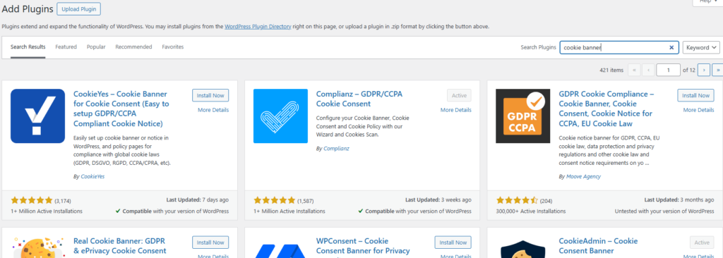When you find the plugin you want, click Install Now.